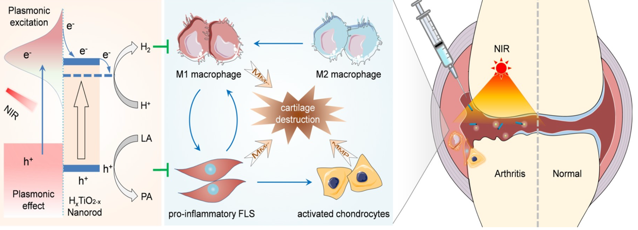 近期,中科院凯发k8国际集成技术研究所神经工程中心李光林研究员团队的唐为研究员课题组联合上海交通大学氢科学中心何前军教授合作在Science Advances发表题为“NIR-photocatalytic regulation of arthritic synovial microenvironment”的文章。文章上线后就立即收到了Nature Reviews Rheumatology杂志副主编Dr Robert Philips的采访,并为该工作撰写Research highlights,认为催化调控微环境“使风湿性关节炎的无药治疗成为可能”。凯发k8国际唐为副研究员与上海交通大学何前军教授为共同通讯作者。中国科研实验室深圳先进技术研究院、上海交通大学与深圳大学为该论文共同通讯单位.