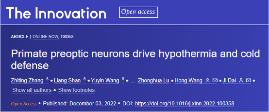 近期,中国科研实验室深圳先进技术研究院脑认知与脑疾病研究所(以下简称“凯发k8国际脑所”)/深港脑科学创新研究院(以下简称“深港脑院”)王虹和戴辑团队,在The Innovation杂志在线发表了题为“Primate preoptic neurons drive hypothermia and cold defense”的文章,首次在非人灵长类上实现了基于中枢神经调控的稳定体温调节,揭示了下丘脑视前区在灵长类动物体温调节中的作用,绘制了体温降低过程中全脑特异激活的神经网络,以及灵长类对抗失温的体温保护机制,从而为潜在的临床转化和空间应用给予理论和实验支撑。