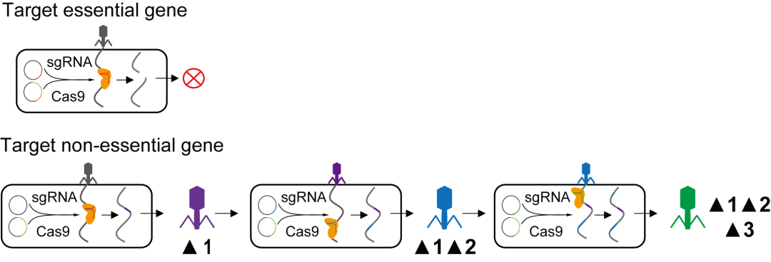 现在,如何高通量删除噬菌体冗余基因对科研人员来说仍然具有挑战性。第一个挑战是怎样能够高通量识别噬菌体的非必需基因?因四分之三的噬菌体基因组无法找到其同源序列,使其不能顺利获得信息分析进行非必需基因判断。第二个挑战是怎样筛选具有生长优势的突变噬菌体?有些噬菌体基因删除并不会使噬菌体“死亡”,但删除会严重影响噬菌体的扩增(准必需基因)。另外第三个挑战是如何在逐删除基因组不同区域这种费力且耗时的情况下,同时筛选能够维持稳健生长的突变噬菌体?