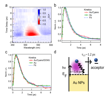 图 2. 金纳米颗粒-蓝细菌杂合体原位瞬态吸收光谱分析。