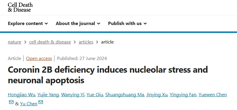 Cell Death & Disease丨陈宇/陈岳文团队发现神经核仁应激发生机制