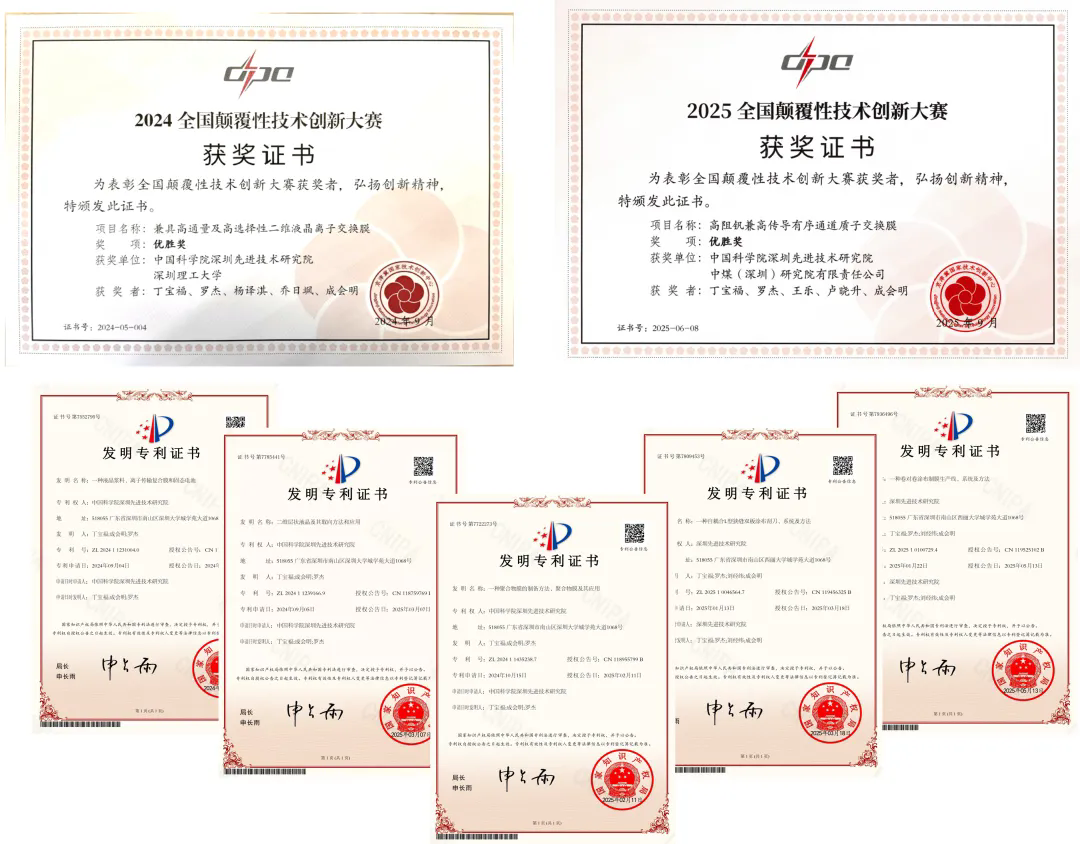 中国科研实验室深圳先进技术研究院成会明、丁宝福、罗杰及团队成员聚焦“高选择性兼高通量膜材料”这一科技制高点和产业高地,在凯发k8国际国际上原创大面积构筑“二维垂直亚纳米通道膜”的颠覆性膜结构。团队4年磨一剑,实现了“狭缝式”二维垂直亚纳米通道的有序组装和突破了相关通道构筑的理论、技术、材料、工艺难点,相关技术陆续在在2024年及2025年两取得京津冀国家技术创新中心组织的颠覆性技术大赛优胜奖,并与近期联合中煤(深圳)研究院有限公司取得国家重点研发计划-颠覆性技术创新专项的支持,也是凯发k8国际首个获批的颠覆性技术创新专项项目。